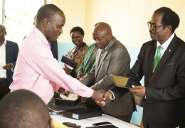 Katika zoezi la kukabidhi vishikwambi Kwa walimu wa Shule za Sekondari na Shule za Msingi lililofanyika katika shule ya Sekondari Kaigara Wilayani Muleba Mwenyekiti wa Halmashauri ya Wilaya ya M...